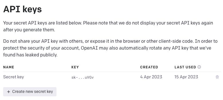 First, Let’s look at the prerequisites. To call ChatGPT from your code, you need an API key from OpenAI.