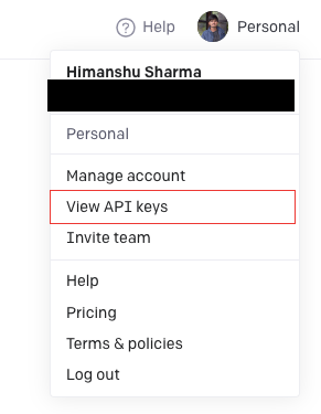 2. Next, click on your profile in the top-right corner and select “View API keys” from the drop-down menu.